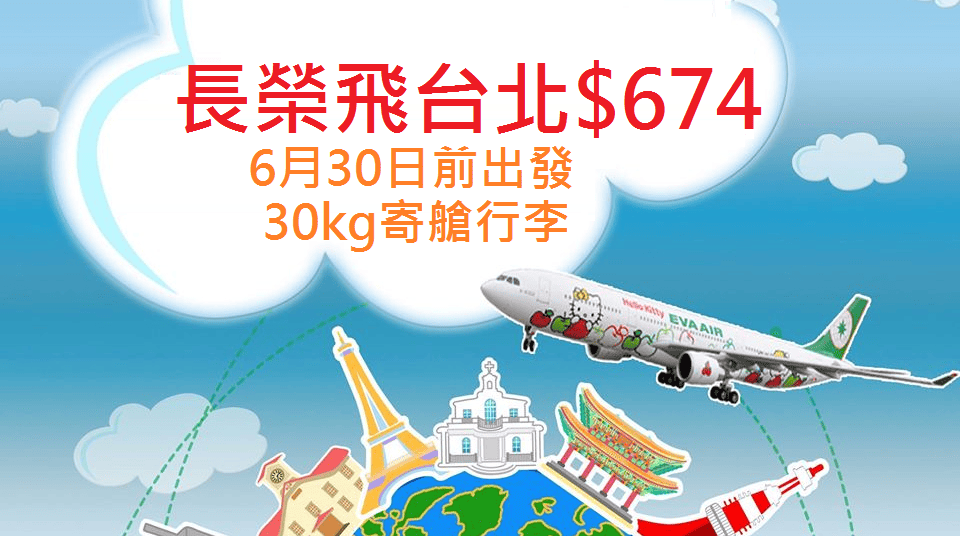 長榮飛台北來回只需$674,連稅$1,078