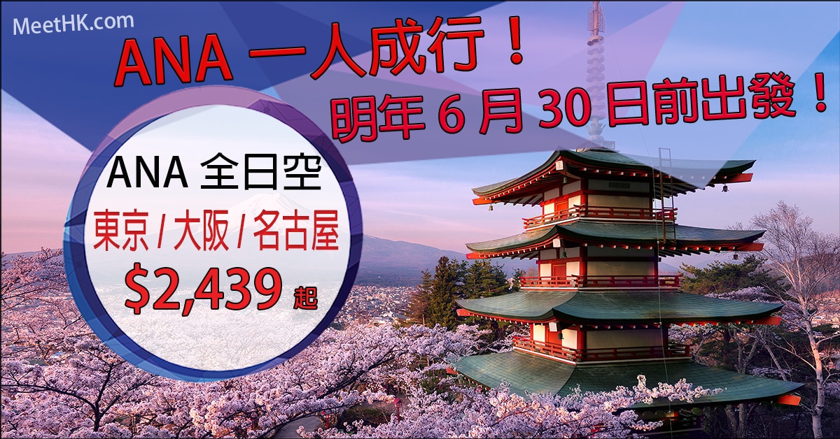 ANA一人成行說走就走!明年6月30日前出發!兩件各23kg行李!香港往返東京、大阪、名古屋只需$2,439起 – ANA 全日空 (優惠至10月24日)