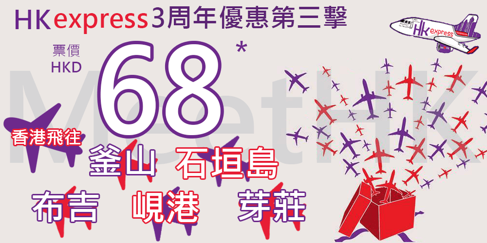 HK Express 一連10日推出3周年震撼優惠!每2日都有唔同航點開賣!