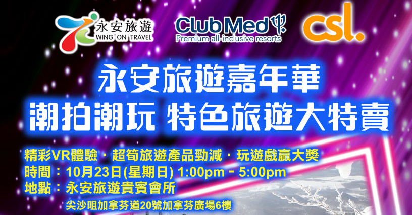 永安旅遊今個星期日(10月23日)會係佢地尖沙咀既貴賓會所舉行「永安旅遊嘉年華」活動