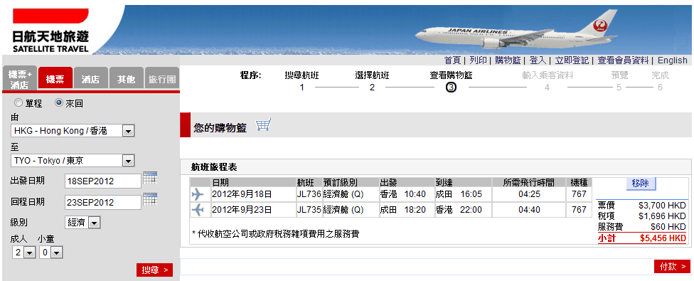 2/8/2012 update 咁多日本機票優惠,搞到日航都要一減再減,減多$100,機票$1,750,連埋稅$2,592