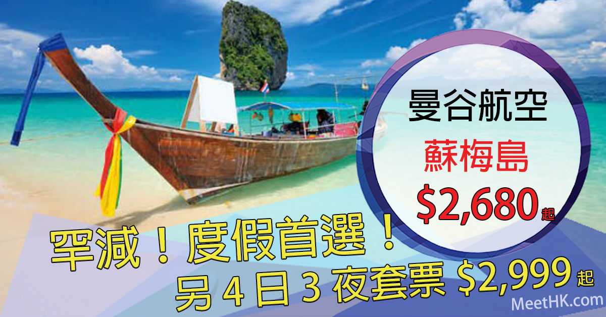罕減!度假首選!曼谷航空香港直航往返蘇梅島只需$2,680起,4日3夜套票只需$2,999起 – 康泰旅行社 (優惠至11月15日)