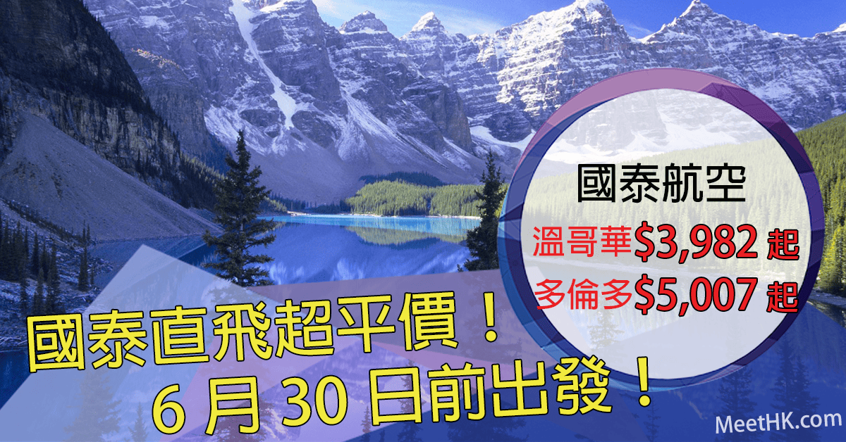 國泰直飛加拿大超平價!6月30日前出發!香港往返溫哥華只需$3,982起,多倫多$5,007起 – GoGoGo! (優惠至11月14日)