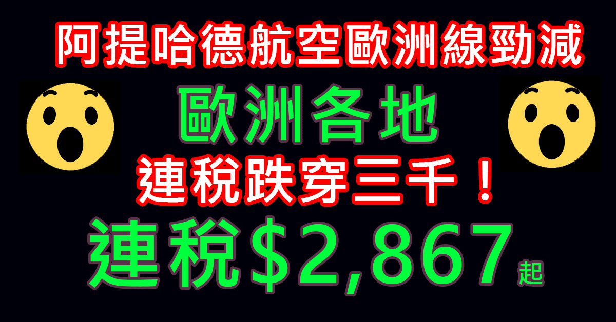嘩!飛歐洲來回連稅跌穿三千!連稅最平$2,867,$2,867,係$2,867!