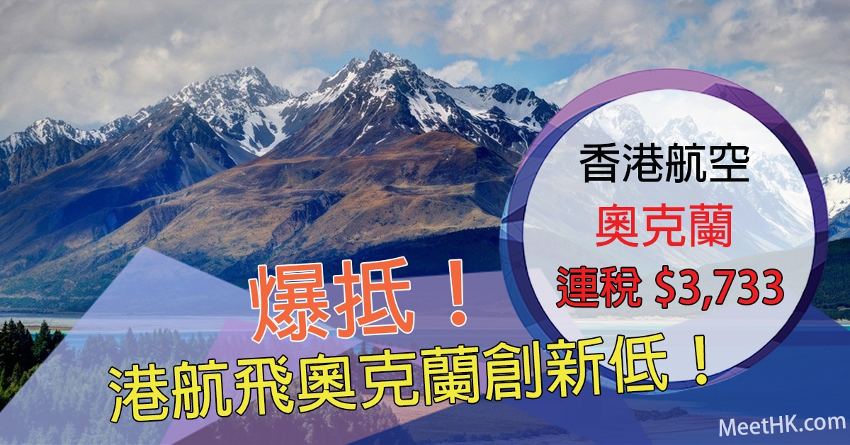 爆抵!港航飛奧克蘭新低價!香港直航往返奧克蘭只需$3,050 – 香港航空 (優惠至12月4日)