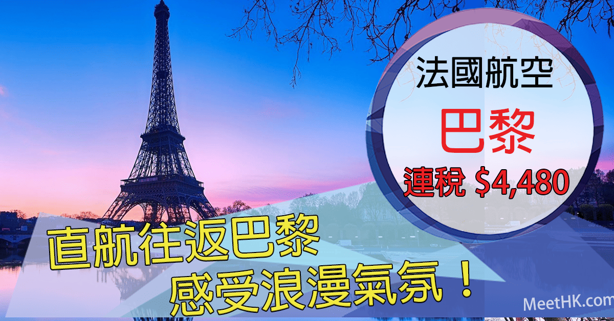 香港直航往返巴黎只需$3,693,連稅$4,480,直航黎講價錢都唔錯