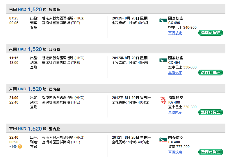 8月24日或之前出發 香港往返台北只需 $1,520,連埋稅就$2,226