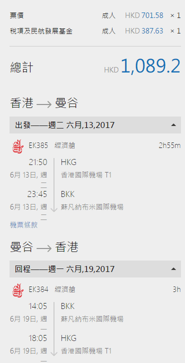 香港往返曼谷只需$702起,連稅$1,089起,好吸引下