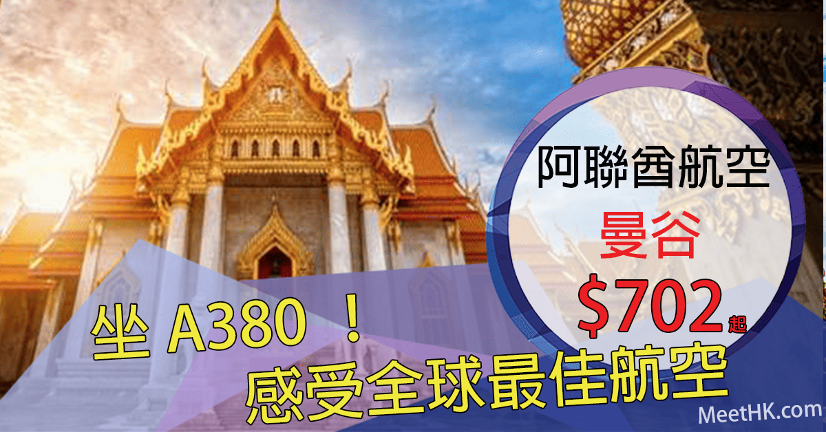 泰泰泰抵啦!全球最佳航空兼A380!明年6月29日前出發!香港往返曼谷只需$702起 – 阿聯酋航空 (優惠至12月2日)
