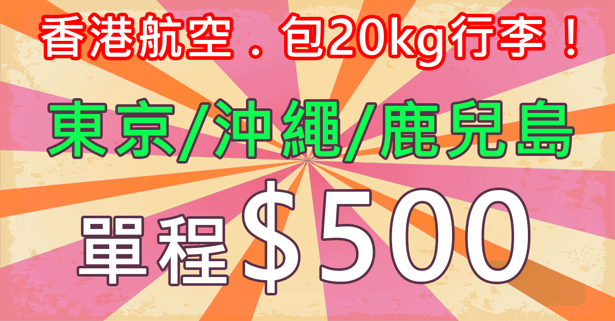 香港飛東京、沖繩、鹿兒島單程只需$500,連稅$710,抵過坐廉航!