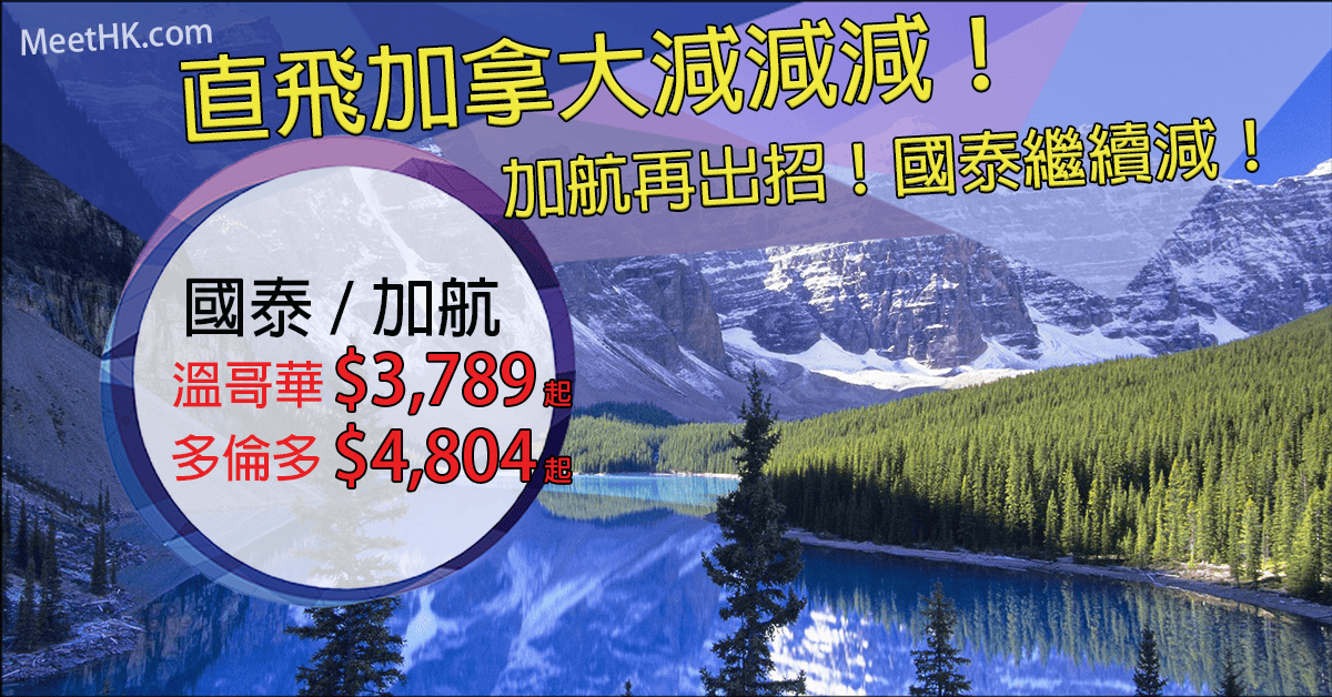 嘩!好抵呀!直飛加拿大越減越有!連稅四千四直飛溫哥華,多倫多五千五有找