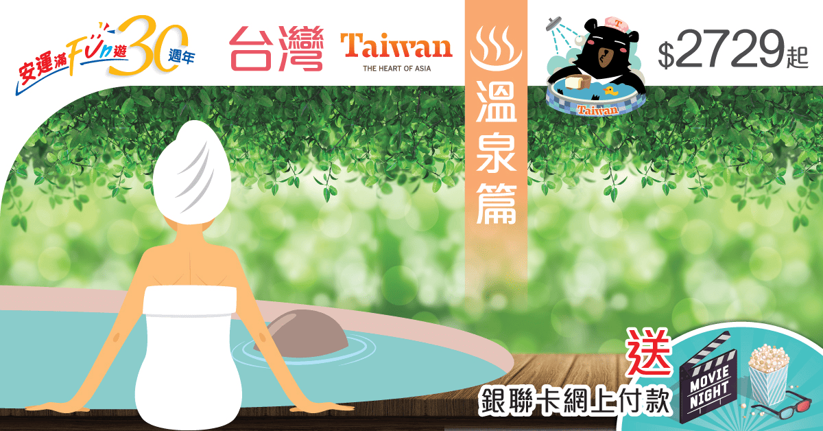 安運滿Fun遊推出國泰/國泰港龍 台北 + 北投/宜蘭溫泉套票優惠,4日3夜只需$2,729起