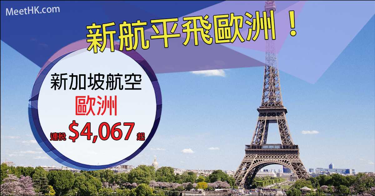 新航平飛歐洲!明年6月19日前出發!香港往返歐洲各地連稅只需$4,067起 – 新加坡航空 (優惠至12月16日)
