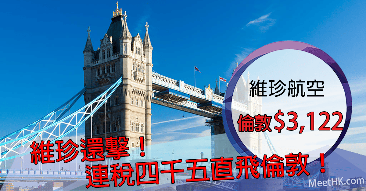 勁抵!維珍還擊!連稅四千五!聖誕直飛倫敦!明年1月22日前出發!香港直航往返倫敦只需$3,122 – 維珍航空 (優惠至12月2日)