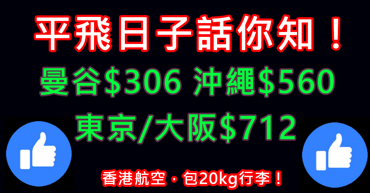 港航10周年機票大平賣!平飛日子話你知!曼谷$306、沖繩$560,東京/大阪$712 – Wefly.com.hk (優惠至12月4日)