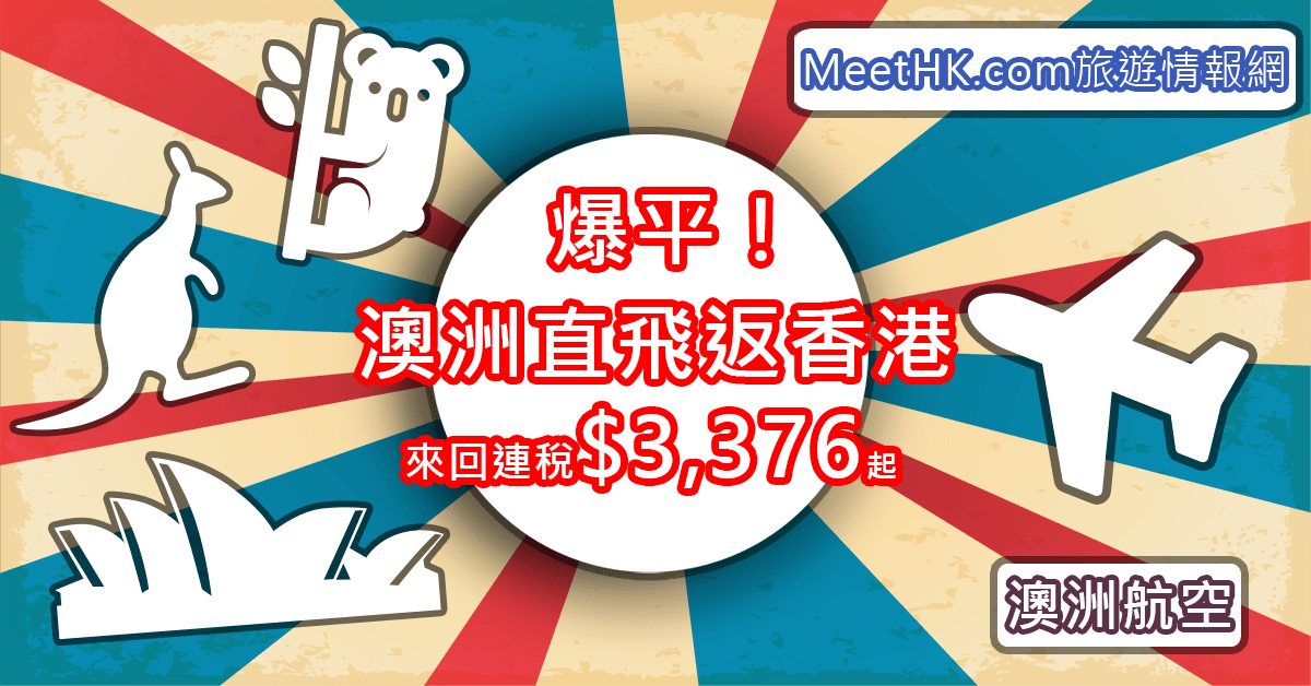 嘩!澳洲飛返香港都爆平!明年6月15日前出發!澳洲各地直飛返香港來回連稅只需$3,376起 – 澳洲航空 (優惠至12月6日)