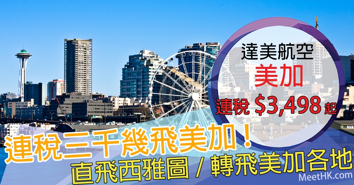 抵呀!連稅三千幾飛美加!香港直航往返美國西雅圖連稅只需$3,584,轉飛三藩市/溫哥華/紐約連稅$3,498起 – 達美航空 (優惠至12月19日)