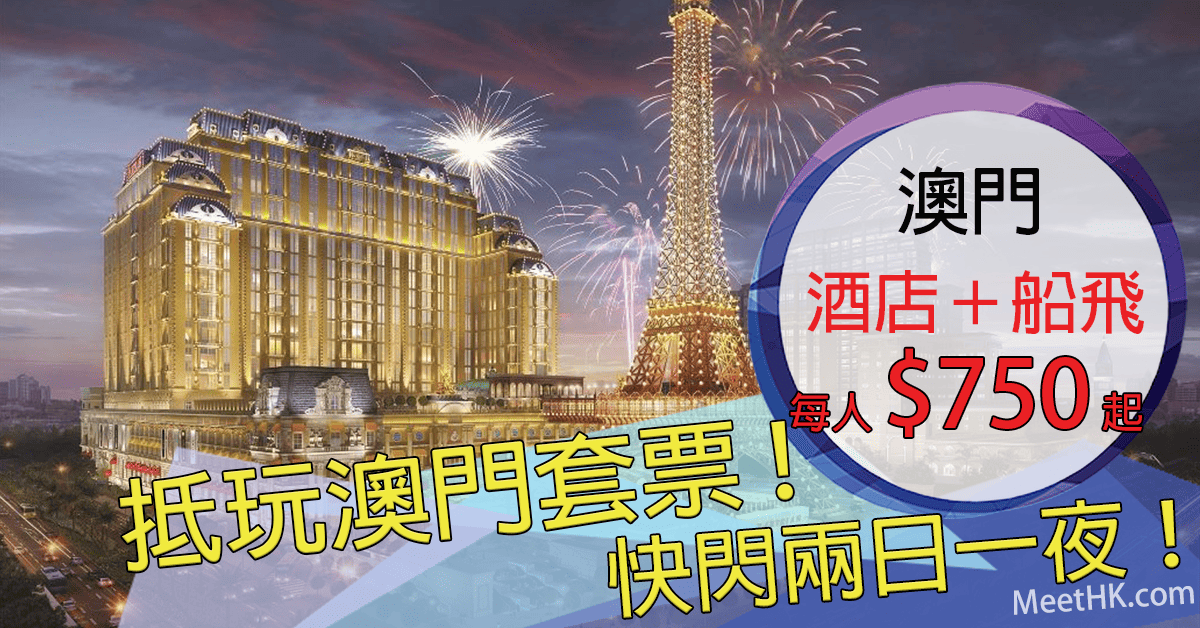 巴黎人酒店套票每人$885起,去澳門都可以睇到巴黎鐵塔;