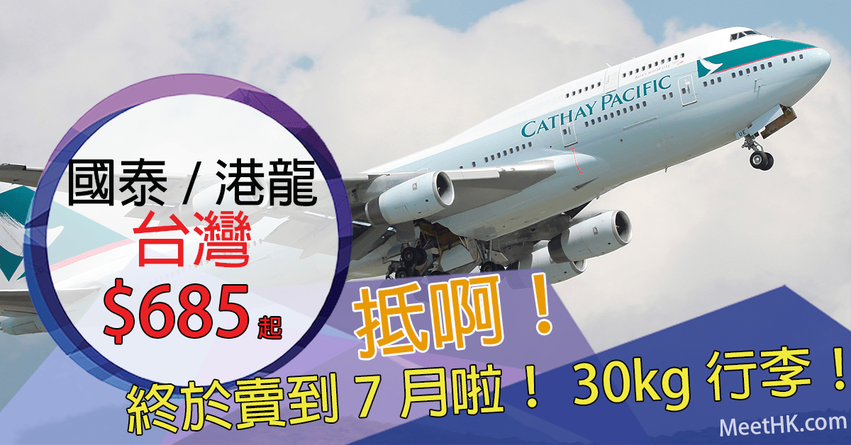 等到啦!等到啦!國泰港龍終於推出埋3月至7月飛台灣優惠啦