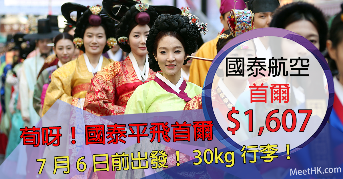荀呀!國泰平飛首爾!7月6日前出發!30kg行李!香港往返首爾只需$1,607 – 國泰航空 (優惠至2月15日)