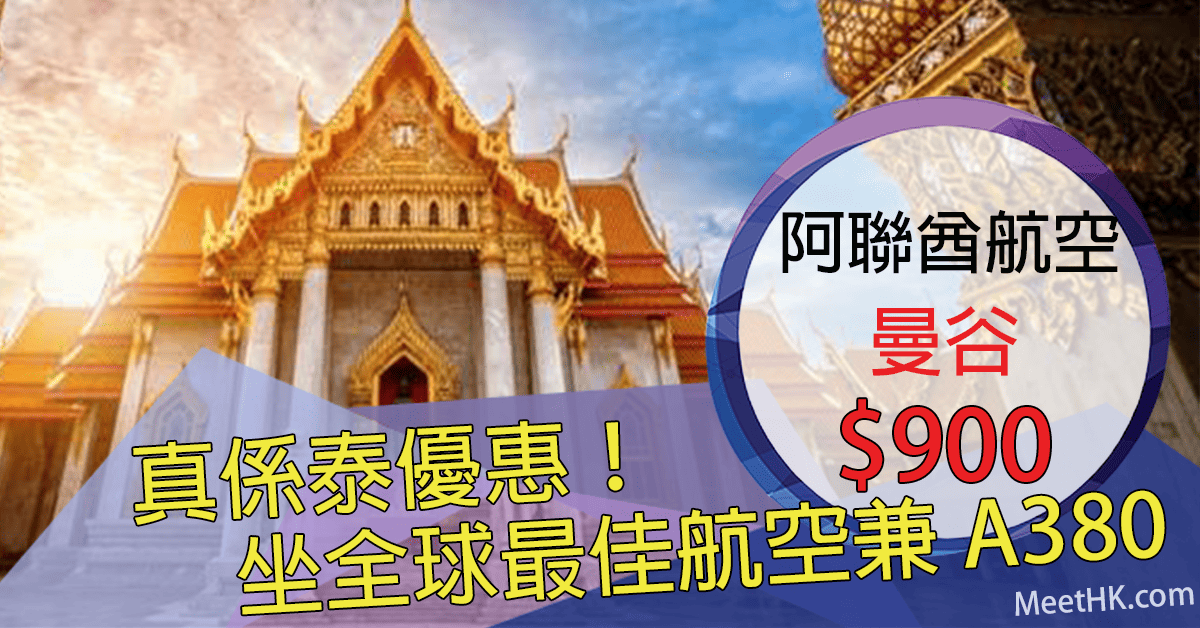 真係泰優惠!全球最佳航空兼A380!明年11月30日前出發!香港往返曼谷只需$900 – 阿聯酋航空 (優惠至1月2日)
