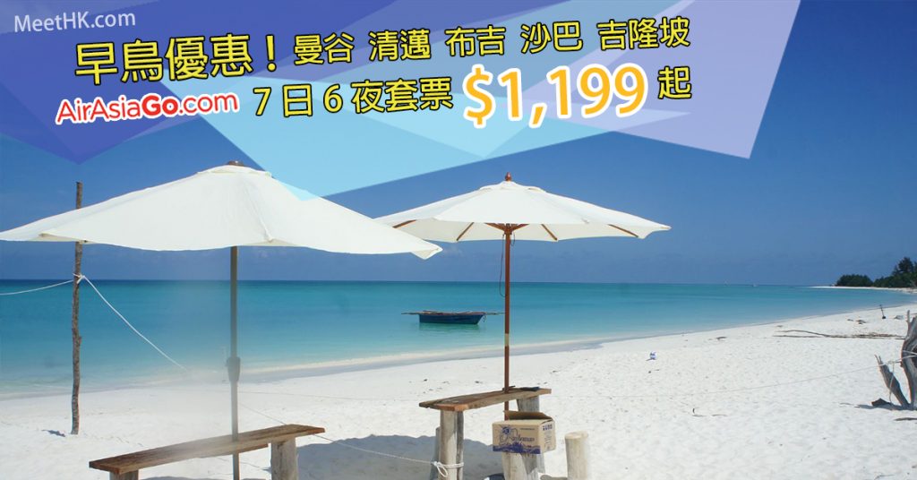香港飛曼谷/清邁/布吉/沙巴/吉隆坡7日6夜套票每人連稅只需$1,199起