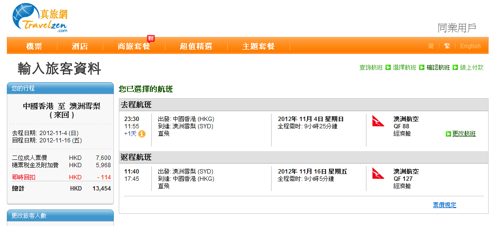 澳洲航空官網做緊$3,960,而真旅網就$3,800,比澳航官網平$160,建議大家上真旅網訂票,另外真旅網用上銀信用卡有5%回贈