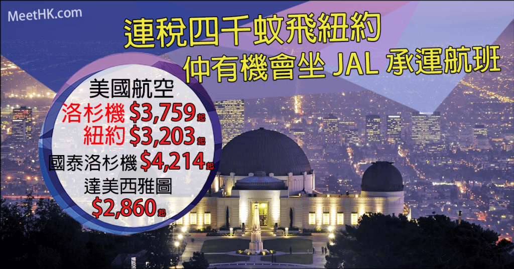 平飛美國!美國航空直飛洛杉機$3,759起,轉飛紐約$3,203起;達美直飛西雅圖$2,860起;國泰直飛洛杉機$4,214起 – 心程旅遊 S Travel (優惠至1月31日)
