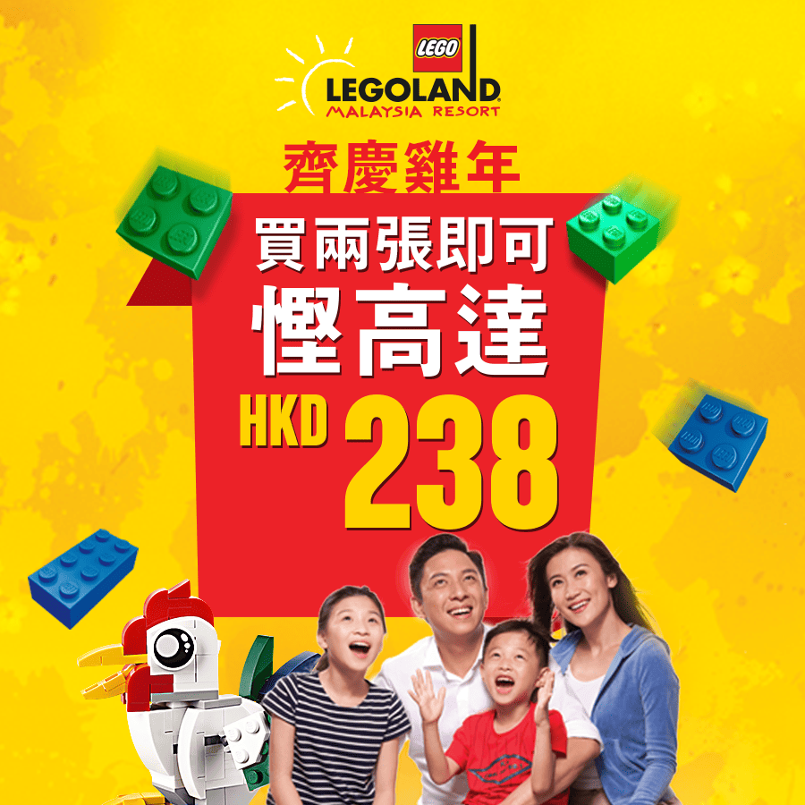 抵呀!限時優惠!馬來西亞LEGOLAND主題樂園、水上樂園門票二人同行7.2折優惠 (優惠至1月25日)