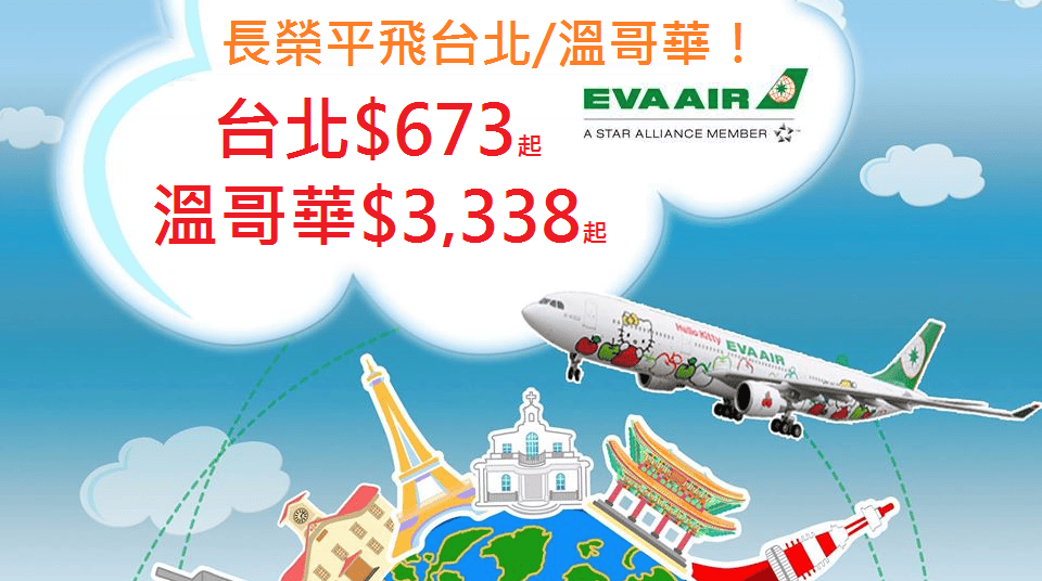 連稅唔駛千一坐長榮飛台北,飛溫哥華連稅三千八咋,出發日期仲可以去到11月