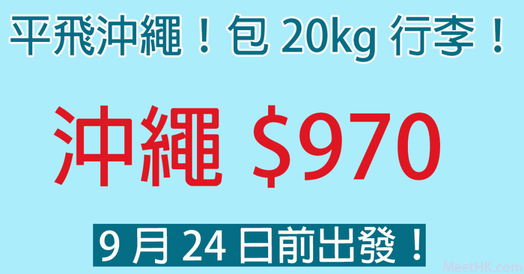 抵呀!平飛沖繩!9月24日前出發!包20kg行李!香港往返沖繩只需$970 – 香港航空