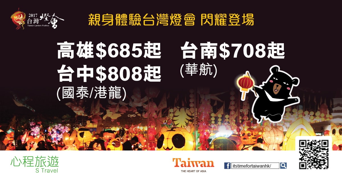 親身體驗台灣燈會!6月29日前出發!30kg行李!華航飛台北/高雄/台南來回只需$708起,台中$726起 (可open jaw) – 心程旅遊 S Travel (優惠至1月31日)
