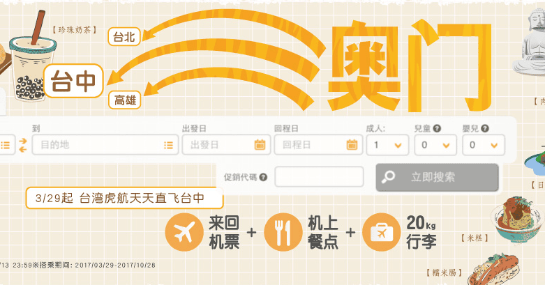 台灣虎航會係3月29日開辦澳門飛台中新航線,而家有優惠做緊