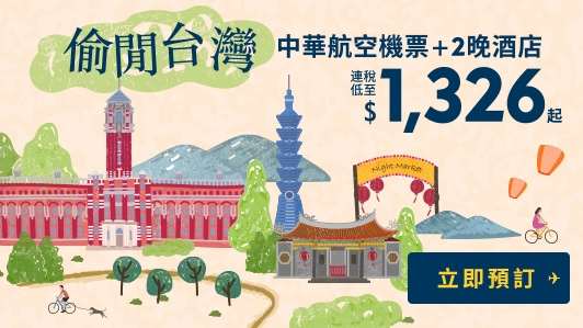 台灣3日2夜套票每人連稅只需$1,326起,已經包左機票、酒店同稅費