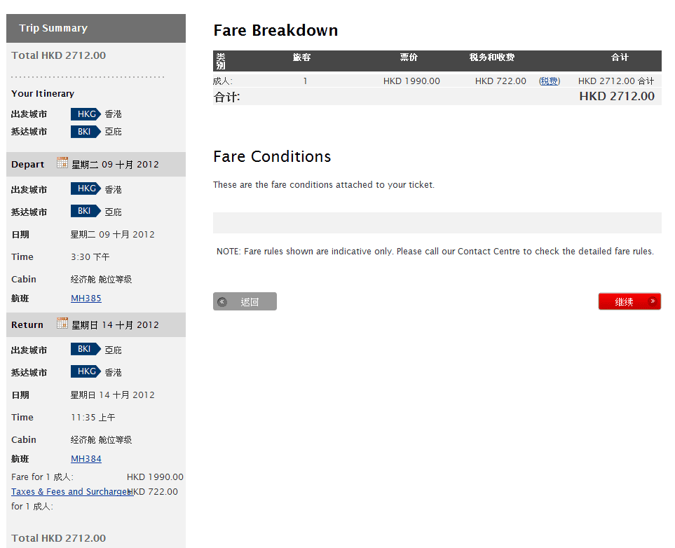 經我們測試,以沙巴10月9日出發,10月14日返回為例