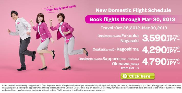另外樂桃航空將會係聽日(8月22日)香港時間1-2pm分批開售10月28日至2013年3月30日出發既日本本土國內線機票