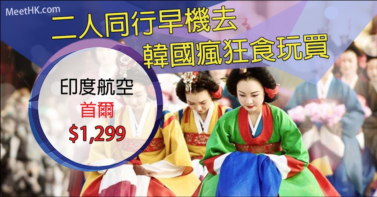 平飛首爾!3月31日前出發!早機出發!香港往返首爾二人同行每人只需$1,299 – 印度航空
