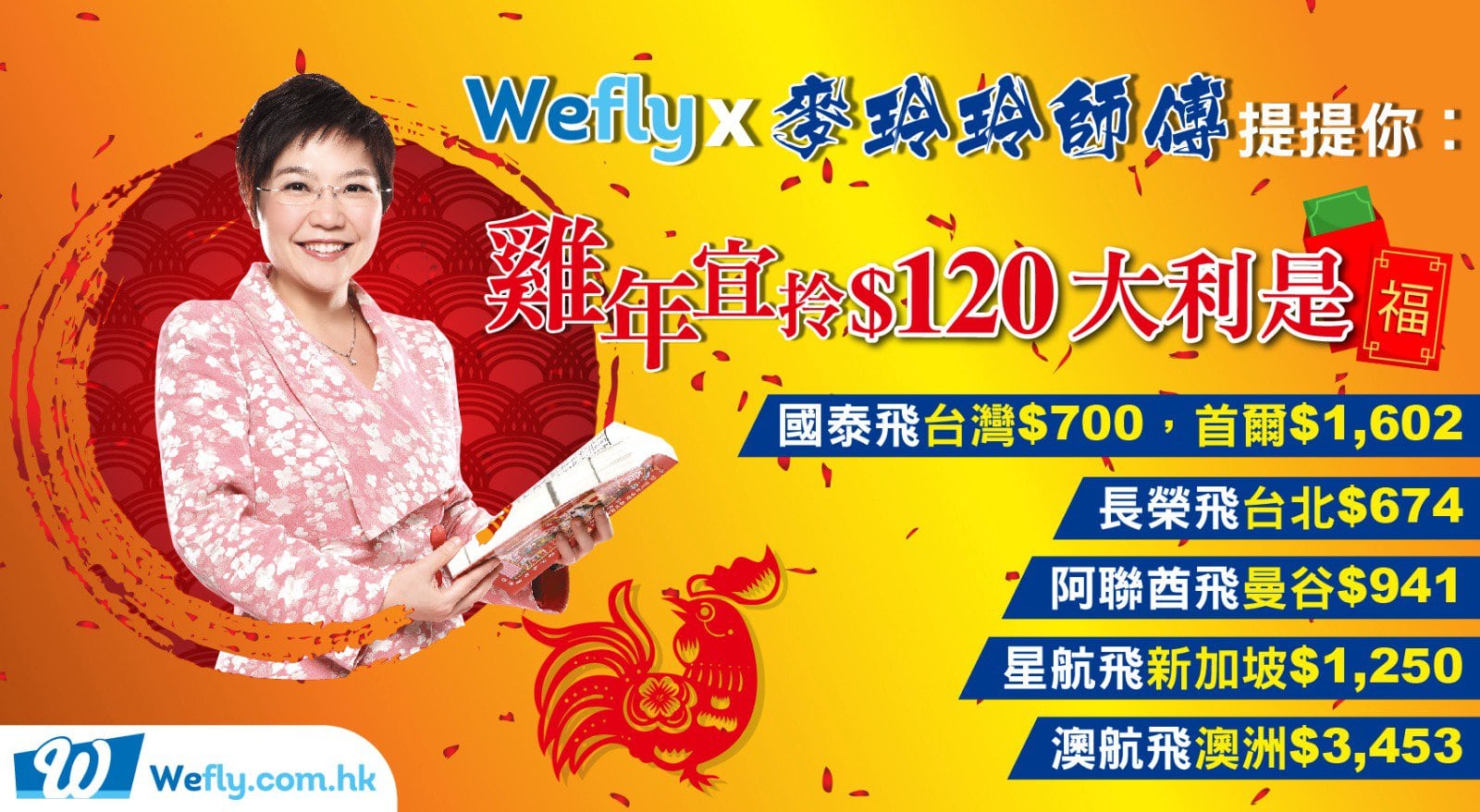 新年新氣象!全線機票每張減$120!長榮飛台北$674;國泰/港龍飛台灣$700起;阿聯酋飛曼谷$941;國泰飛首爾$1,602起,新航飛新加坡$1,250,澳航飛澳洲$3,453 – Wefly.com.hk (優惠至2月5日)