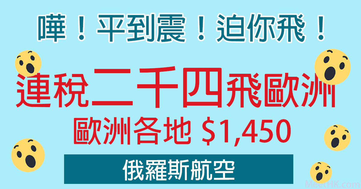 嘩!連稅二千四飛歐洲!平到震!迫你飛!6月15日前出發!香港往返歐洲各地只需$1,450 – 俄羅斯航空 (優惠至2月20日)