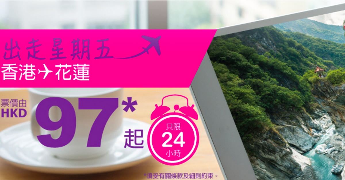 又有$97平飛,HK Express 今個星期出走星期五優惠係花蓮!
