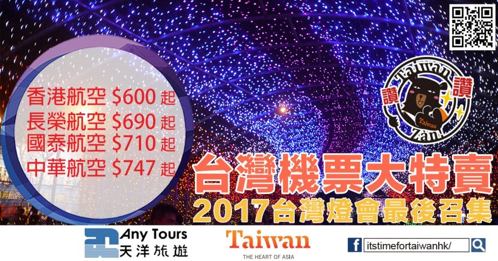 台灣年宵燈會即將開始啦!港航飛台北$600,長榮飛台北$690,國泰飛台灣$710起,華航飛台灣$747起 – Any Tours天洋旅遊