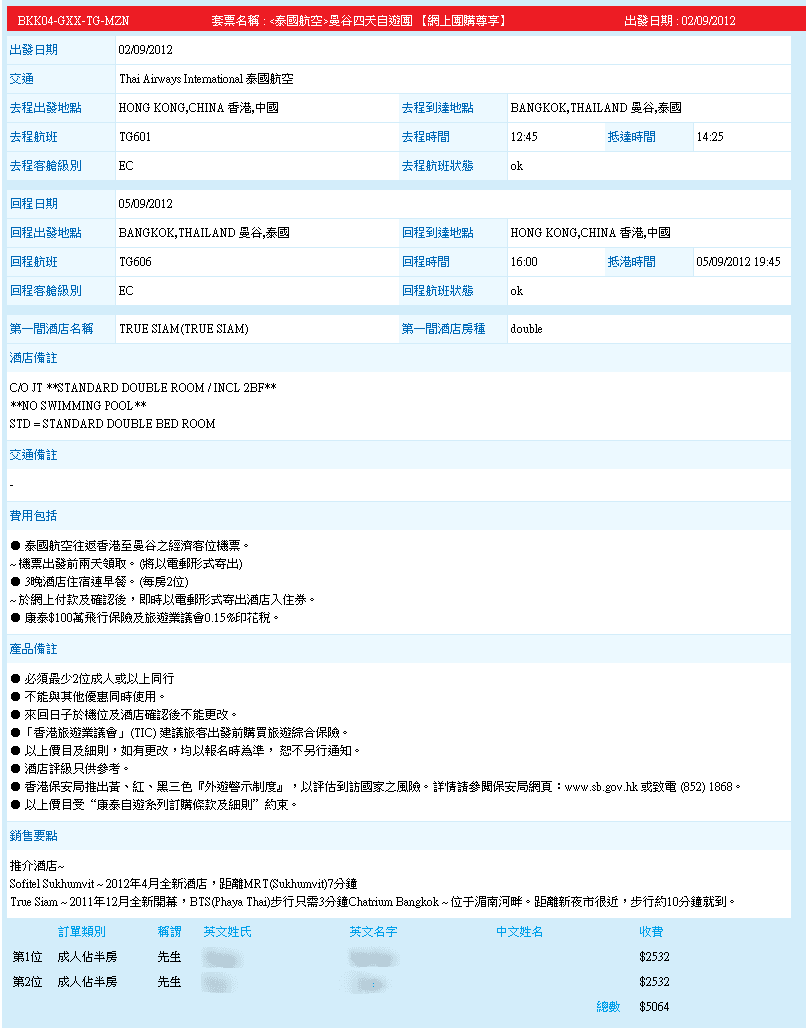 康泰近日推出左隻團購,九月份出發,泰國航空香港往返曼谷 + 3晚酒店自由行套票只需$1,699,連埋稅就$2,532,呢個價的確幾抵