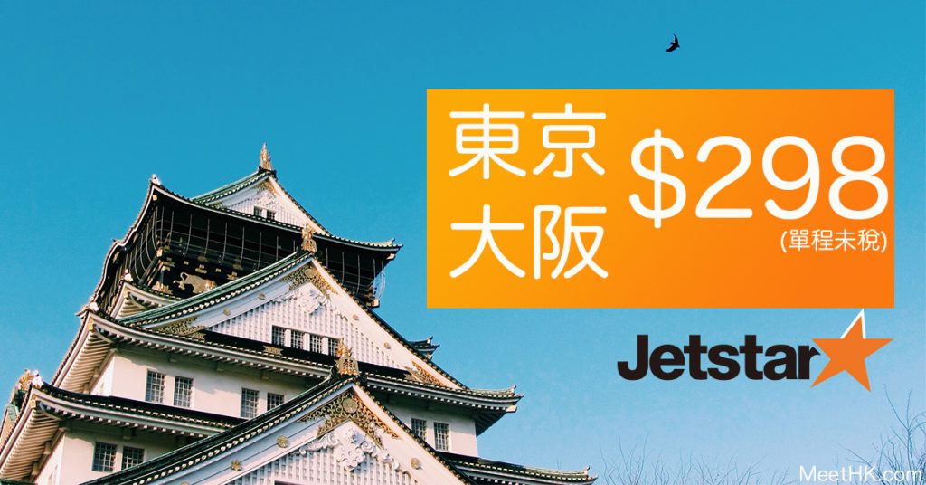 抵呀!明早10點開賣!香港飛東京、大阪單程只需$298,新加坡$178,峴港$148,胡志明市$88,河內$118 – Jetstar (優惠至2月11日)