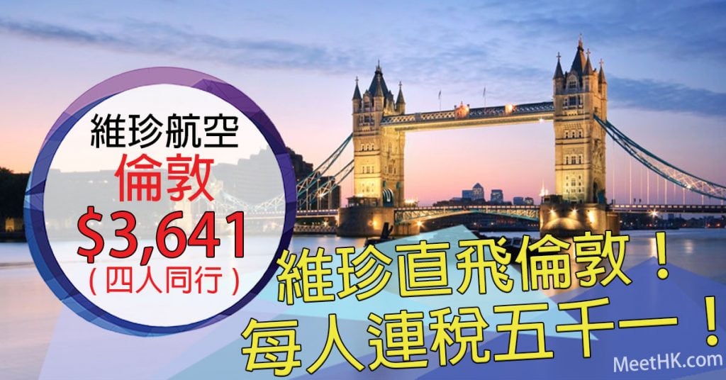 香港直航往返倫敦四人同行每人只需$3,641,連稅$5,105