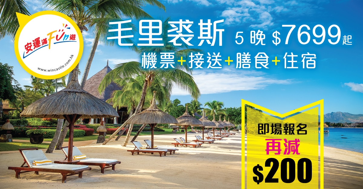 安運滿Fun遊就推出咗毛里裘斯套票優惠,7日5夜直飛毛里裘斯套票都只係$7,699起,連稅$8,740起