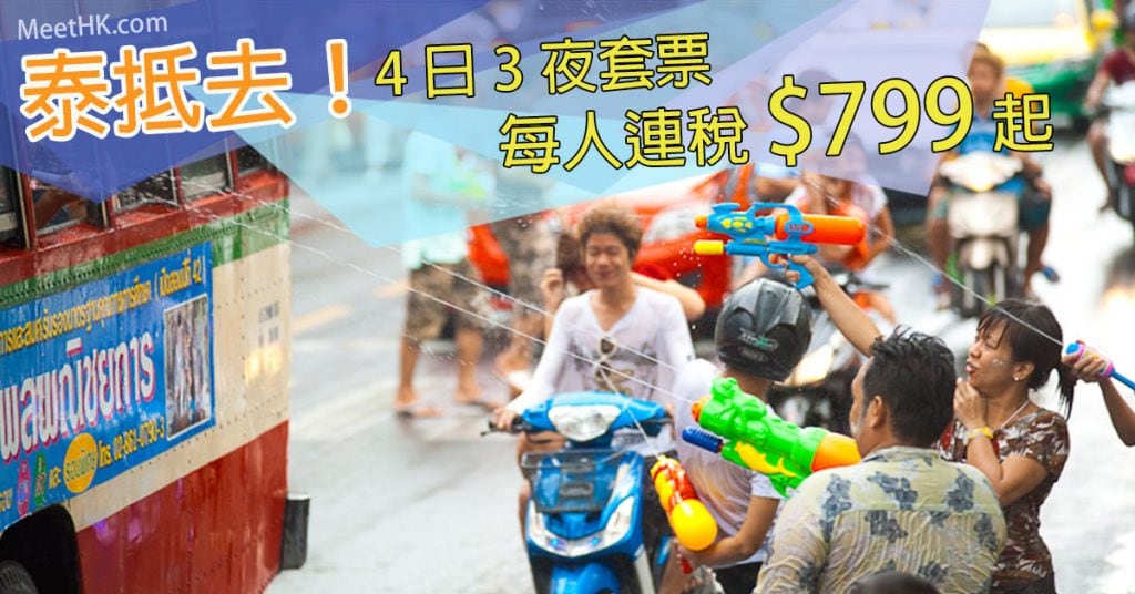 香港飛曼谷/布吉/清邁4日3夜套票每人連稅只需$799起,潑水節期間出發都只係連稅$1,500起!