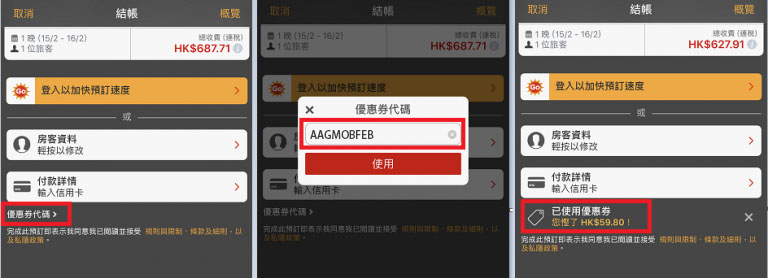 9折優惠碼:AAGMOBFEB (優惠碼不適用於部分連鎖酒店)