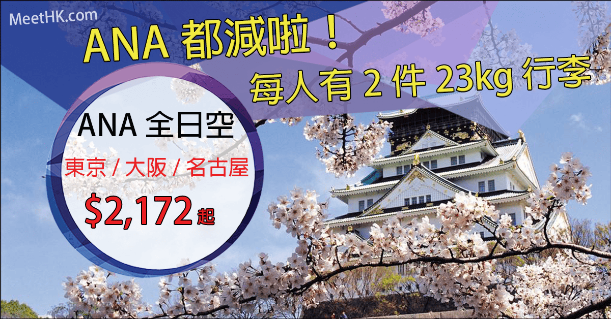 嘩!ANA都減啦!7月6日前出發!兩件各23kg行李!ANA全日空飛東京、大阪、名古屋只需$2,172起 – 心程旅遊 S Travel (優惠至3月10日)