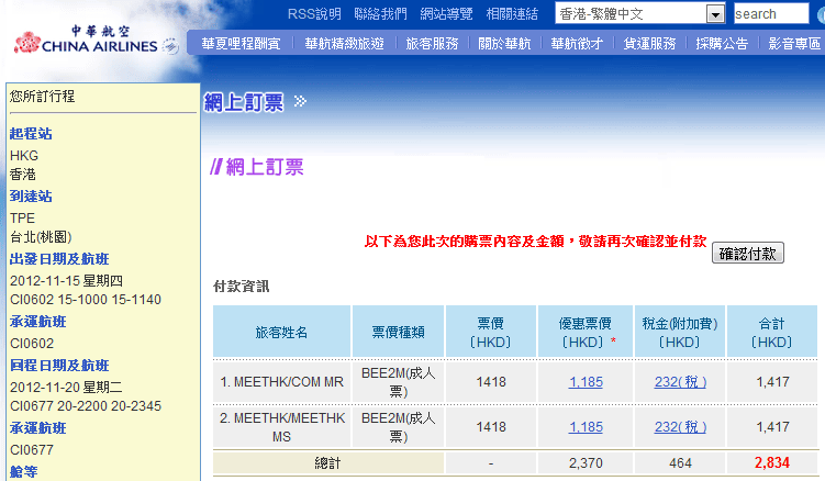 大家可以上華航網站出飛! (記住人數必須揀2人或者以上先見到優惠)
