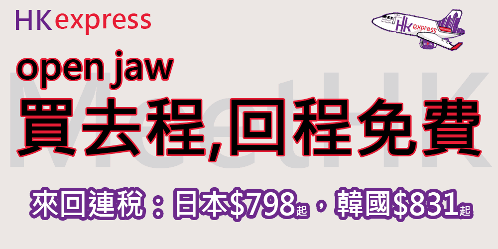 買去程,回程$0!open jaw!今晚12點開賣!香港飛台灣/東南亞來回$248起,日本各地$298起,首爾/釜山/濟州$368起 – HK Express (優惠至3月2日)